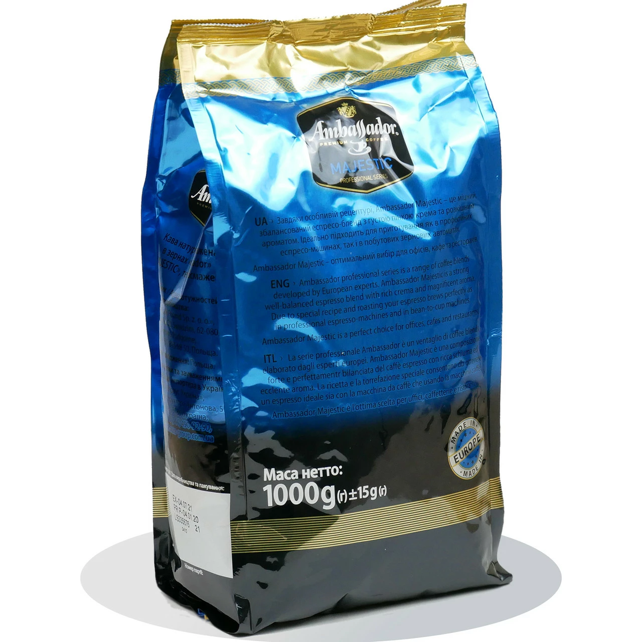Благодаря особой рецептуре, Ambassador Majestic имеет прочный сбалансированный вкус и роскошную густую пенку крема. Идеально подходит для приготовления как в профессиональных эспрессо-машинах, так и в бытовых зерновых автоматах.