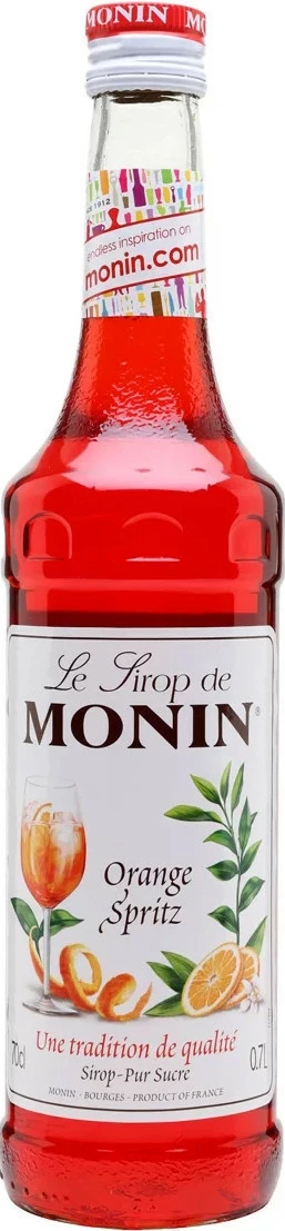 Monin, Orange Spritz — сироп, который представляет собой воплощение соблазнительного коктейля. Однако в отличие от оригинального Спритца, изготавливаемого с добавлением белого вина, он не содержит алкоголя. "Оранж Спритц" от Монин производится исключительно для европейского рынка. В его апельсиновом вкусе легкая сладость сменяется приятной горчинкой. Благодаря высокой концентрации, сироп является прекрасной составляющей для самых разнообразных коктейлей и лимонадов. Наиболее эффектно с яркими прослойками сиропа будут смотреться слоистые коктейли. Также его можно добавлять в чай.