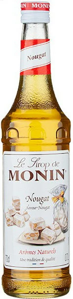 Monin, Nougat — сироп, созданный по мотивам одноименного восточного лакомства. Он обладает невероятно притягательным ароматом и вкусом, в котором медовые нотки гармонируют с нюансами миндаля и фундука. Сироп широко используется при приготовлении различных коктейлей, десертов, сладкой выпечки. Также он хорош в качестве топпинга для мороженого или добавки в чай.